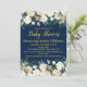 Navy Blue Gold Boho Botanical Greenerity Baby Show Einladung