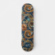Navy Blue Gold Celestial Paisley Muster Monogram Skateboard