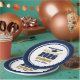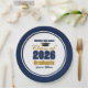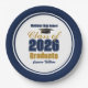 Customize your own navy blue and gold high school Class of 2026 graduate paper plates for a high school or college graduation party. Cool varsity letters for the year on great custom decor for seniors.