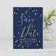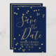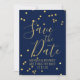 Navy Blue Gold Confetti Flat Save the Date Card