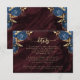 Navy Blue Gold Floral Burgundy Wedding Details Begleitkarte