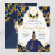 Navy Blue & Gold Floral Elegante Quinceñera Einladung
