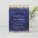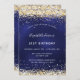 Eine moderne, stilvolle und glamouröse Einladung für eine 21. Geburtstagsfeier (oder jedes Alter). Marineblau, mit Imitaten verziert mit goldenem Glitzer Staub. Die blaue Farbe ist ungleichmäßig. Personalisieren Sie Ihren Namen und Ihre Party-Daten und fügen Sie diese hinzu.