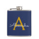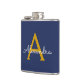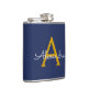 Navy Blue Gold Girl Script Monogram Name Modern Flachmann