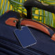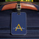 Navy Blue Gold Girl Script Monogram Name Modern Gepäckanhänger
