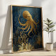 Navy Blue& Gold Kintsugi Octopus Underwater Poster