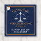 This chic navy blue and gold custom law school graduation party favor tag features classy typography for a class of 2024 graduate. Customize with your graduating year under the white scales of justice for great personalized lawyer or attorney gifts.