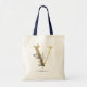 Navy Blue Gold Leaf Modernes Monogram Letter "V" Tragetasche