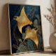 Navy Blue& Gold Manta Rays Elegant Kintsugi Art Poster