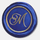 Klassischer Wachs Siegel Design Aufkleber mit marineblau und goldfarben, um mit Ihrem Monogramm für jeden Anlass, vom Geburtstag und Jubiläum bis zum Baby Duschen!