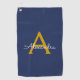 Navy Blue Gold Moderne Script Girl Monogram Name Golfhandtuch
