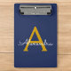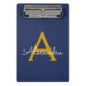 Navy Blue Gold Moderne Script Girl Monogram Name Mini Klemmbrett