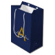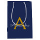 Navy Blue Gold Moderne Script Girl Monogram Name Mittlere Geschenktüte