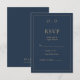 Navy Blue Gold Monogram Wedding RSVP Karte