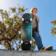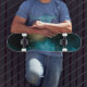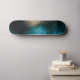 Navy Blau- und Goldfolien sprinkles Imitat und schaffen einen Nebel mit einem eleganten vertikalen Monogramm auf dem Boden des Skateboards.