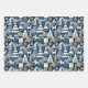 Navy Blue Gold Nordic Christmas Forest Pattern Geschenkpapier Set