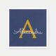 Navy Blue Gold Script Monogram Name Modern Serviette