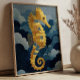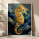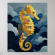 Navy Blue& Gold Seahorse Kintsugi Nautical Art Poster