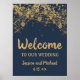 Navy Blue Gold String Lights Bokeh Wedding Willkom Poster