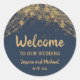 Navy blaue runde Begrüßungsaufkleber mit goldenen Saitenleuchten und Ihrem Text.