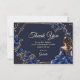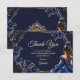 Navy Blue Golden Tiara Roses Quinceañera Dankeskarte