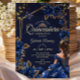 Navy Blue Golden Tiara Roses Quinceañera Einladung
