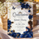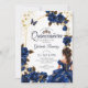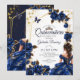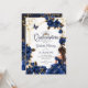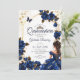 Navy Blue Golden Tiara Roses Quinceañera Einladung