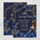Navy Blue Golden Tiara Roses Quinceañera Save The Date