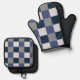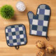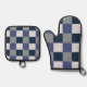 Navy Blue Grau White Checkerboard Ofenhandschuh & Topflappen-Set