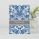 Navy Blue Gray Damask Einladung