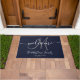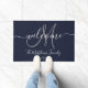 Navy Blue Gray Monogram Script Newlweds Hochzeit Fußmatte