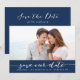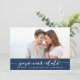 Anpassbare Ankündigung Datum freihalten mit handgeschriebenem Skript auf marineblarem Hintergrund. Andere Farben und ähnliche Gegenstände sind verfügbar.