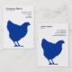 Eine Visitenkartenvorlage mit einem Hühnchen-Symbol. Firmenname, Geschäftstyp und Adresse auf der Vorderseite mit Namen, Jobtitel, Telefonie, Web- und E-Mail-Adressen auf der Rückseite, mit dem gleichen Layout.