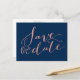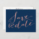 Navy Blue Imitats Rose Gold Foil | Save The Date Ankündigungspostkarte