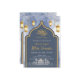 This sophisticated Iftar invitation combines a deep navy alcohol ink background with a bold gold-trimmed arch. Decorated with hanging stars and lanterns over a subtle mosque skyline, it offers a modern and premium feel for your Ramadan event.