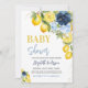 Navy Blue Lemon Citrus Floral Baby Dusche Einladung