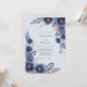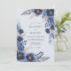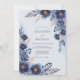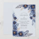 Deep navy blue and indigo watercolor flowers pair with shimmering gold metallic foliage in this design. Delicate anemones and winter berries are artistically arranged to create a lush, atmospheric aesthetic. The cool blue tones and warm gold accents evoke timeless elegance, perfect for a seasonal event.