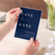 Navy Blue Minimalistisch Elegant Foto Save the Dat