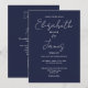 Diese marineblau-blaue, elegante Script-Hochzeitseinladung kann mit Ihren Informationen in schicke Typografie personalisiert werden mit Ihren Angaben auf der Hochzeitswebsite und Ihrem QR-Code auf der Rückseite. Entwickelt von Thisisnotme©