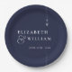 Navy Blue Modern Minimalistisch Monogram Wedding Pappteller