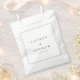 Unsere marineblauen, modernen, minimalistischen Gastgeschenk Hochzeiten-Taschen bieten einen einfachen und eleganten klassischen Schriftart. Sie können Ihre persönlichen Daten ändern, indem Sie die Namen, das Datum und/oder die Farben an Ihr Hochzeitstil anpassen.