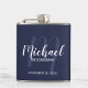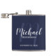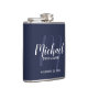 Navy Blue Modern Script Personalisierte Trauzeuge Flachmann