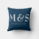 Moderne, schicke Hochzeitskissensuite für Brautpaare, die ihre Zeremonien in marineblau schmücken. Alles Set auf modernem weißem Schriftart mit Initialen auf der Seite.