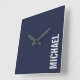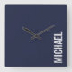 Navy Blue Moderner Minimalistischer Personalisiert Quadratische Wanduhr