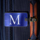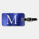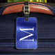 Navy Blue Monogram Brushed Metal Giral Script Name Gepäckanhänger