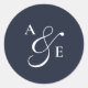 Navy Blue Monogram Script Ampersand Hochzeit Runder Aufkleber