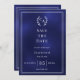 Navy blue monogram wreath wedding save the date