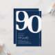 Eine zeitlose, klassische marineblau-weiße 90. Geburtstagsfeier, die nahtlos den Charme der alten Welt des fetten Serif-Schriftartes '90' mit einer modernen, benutzerfreundlichen personalisierbaren Vorlage verbindet. Diese Einladung ist nicht nur eine Karte, sie ist ein bedeutsamer Sake, um den Meilenstein der 90.