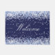 Ein marineblau gefärbter Hintergrund. Dekoriert mit hellblauen Konfetti. Mit dem Text: Willkommen geschrieben mit einem modernen handgeschriebenen Stil Skript.