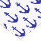 Navy blauer nautischer Ankertisch runner. Das Design ist mit einem marineblauen Ankermuster auf Weiß versehen.